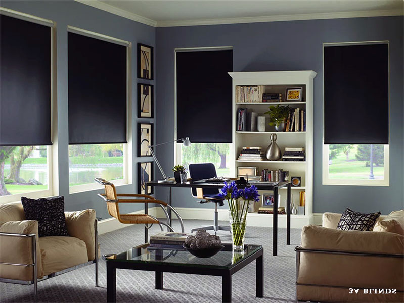 - Thứ nhất là những mẫu màn cuốn màu đen loai vải trơn chống nắng.