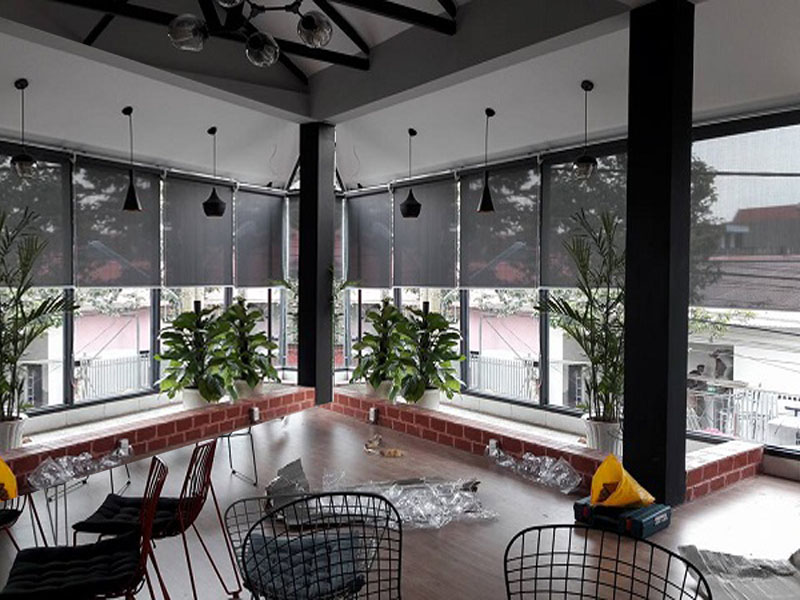 Tham khảo mẫu rèm cuốn vải lưới giá rẻ sử dụng trong thiết kế không gian mở cho văn phòng, nhà hàng, quán cafe