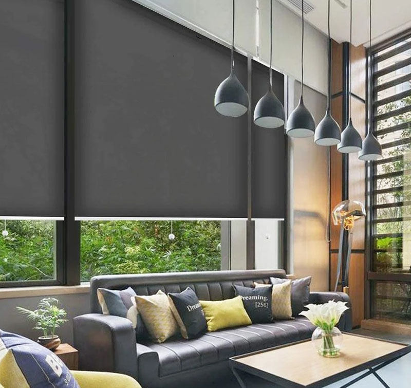 Mẫu rèm cuốn giá rẻ, chất liệu vải phủ nhựa polyester chắn sáng 100% cản nhiệt tốt. Phù hợp lắp đặt cửa sổ cửa kính văn phòng, gia đình.