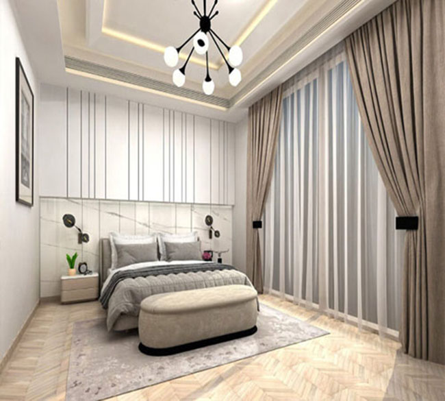 - Kiểu rèm vải voan 1 lớp tự động mở ngang 2 bên, lắp đặt cho khu thông tầng của chung cư biệt thự